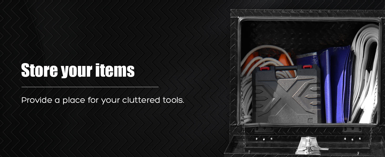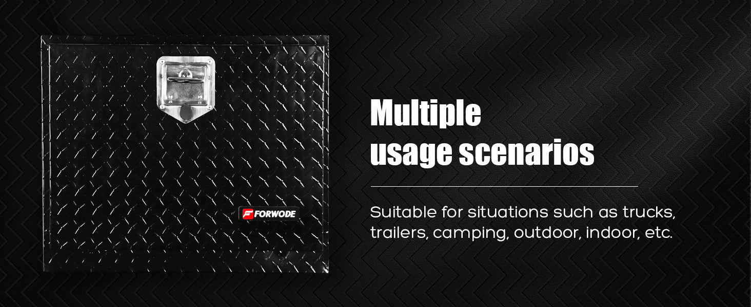 FORWODE aluminum tool box for boasts a simple yet vintage design, offering a lightweight and durable storage solution. When the doors are closed, the seal strip inside prevents moisture or water from entering, protecting your tools from harsh weather conditions. The side-opening door makes it more convenient to arrange items inside the box. You can easily access the box while standing on the ground next to the truck. Equipped with a handle in the middle, making it easier to open.