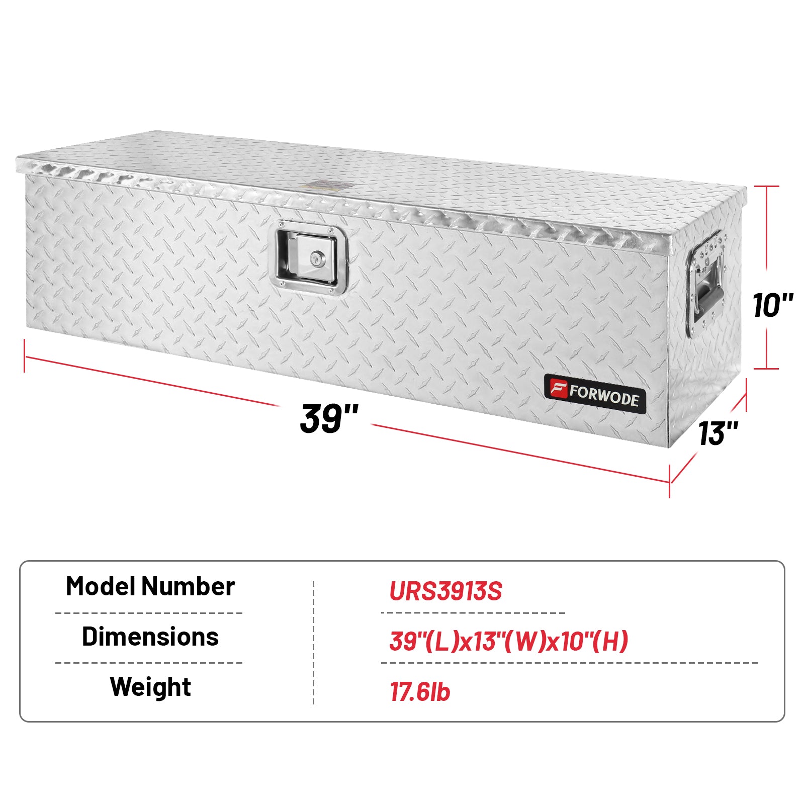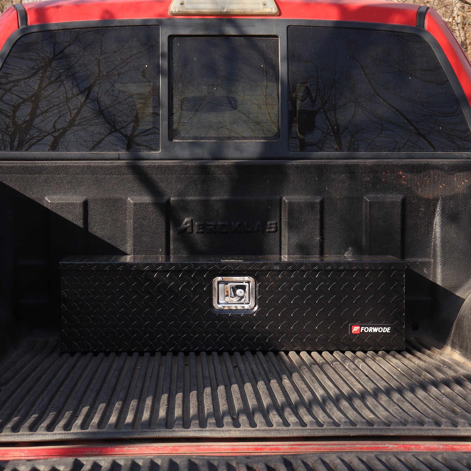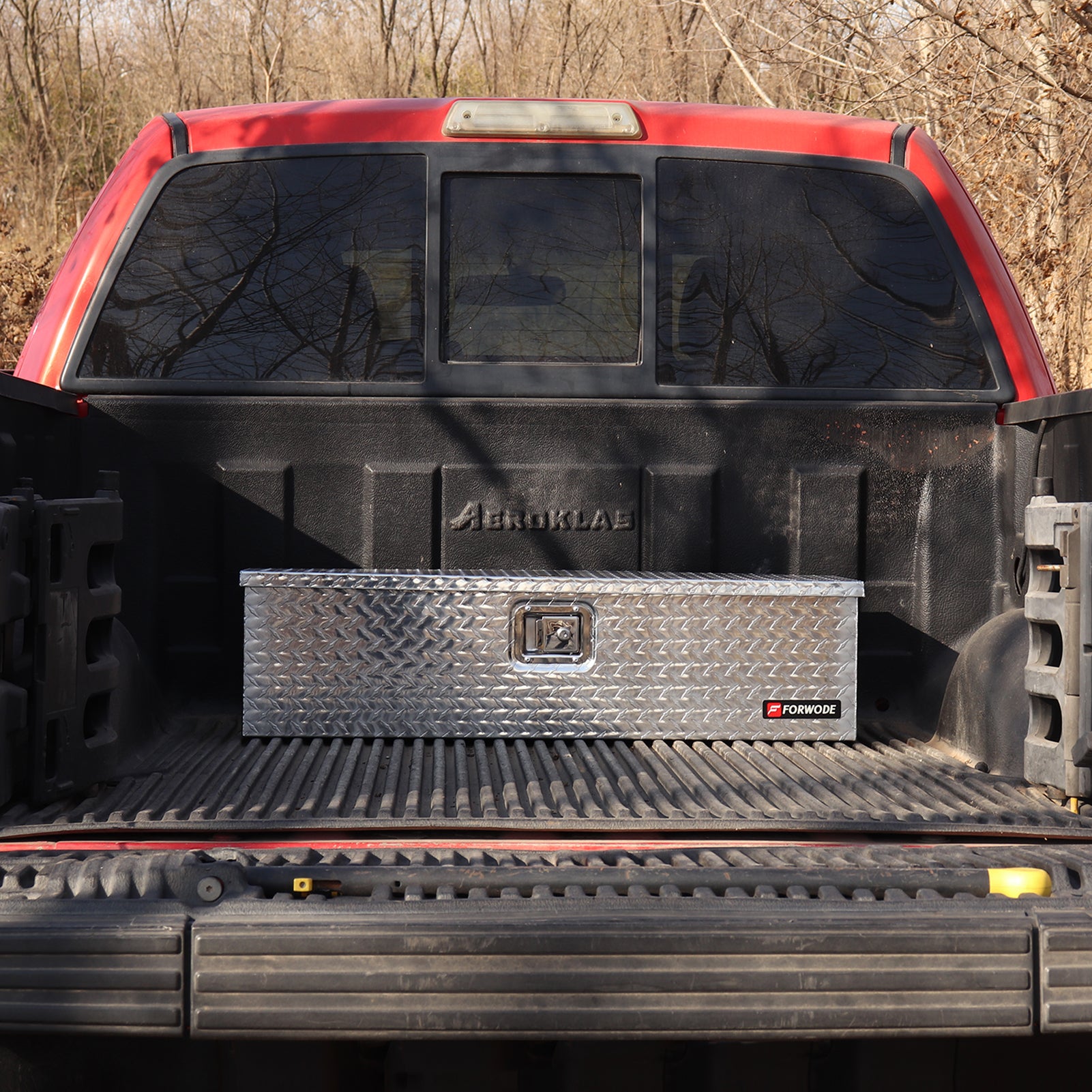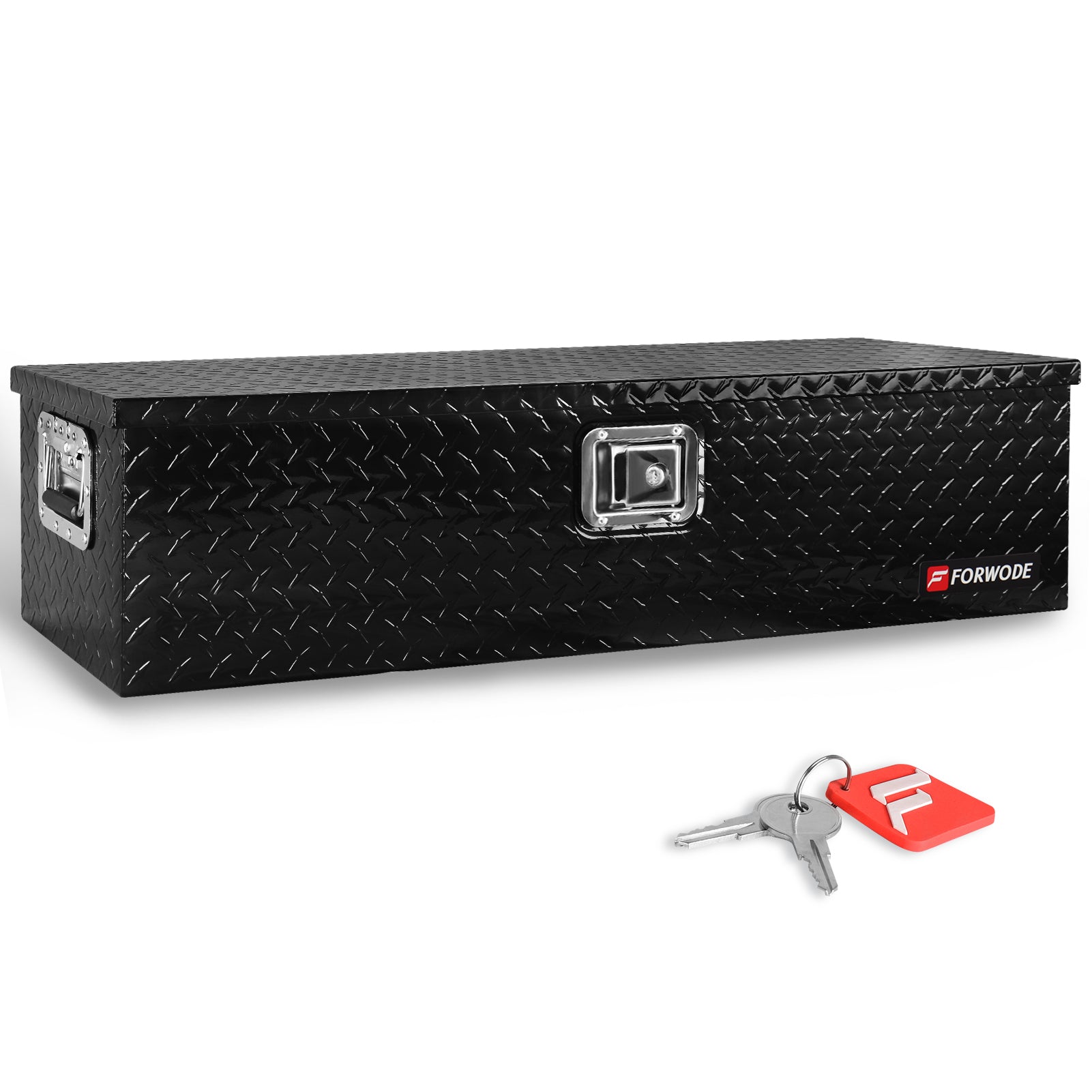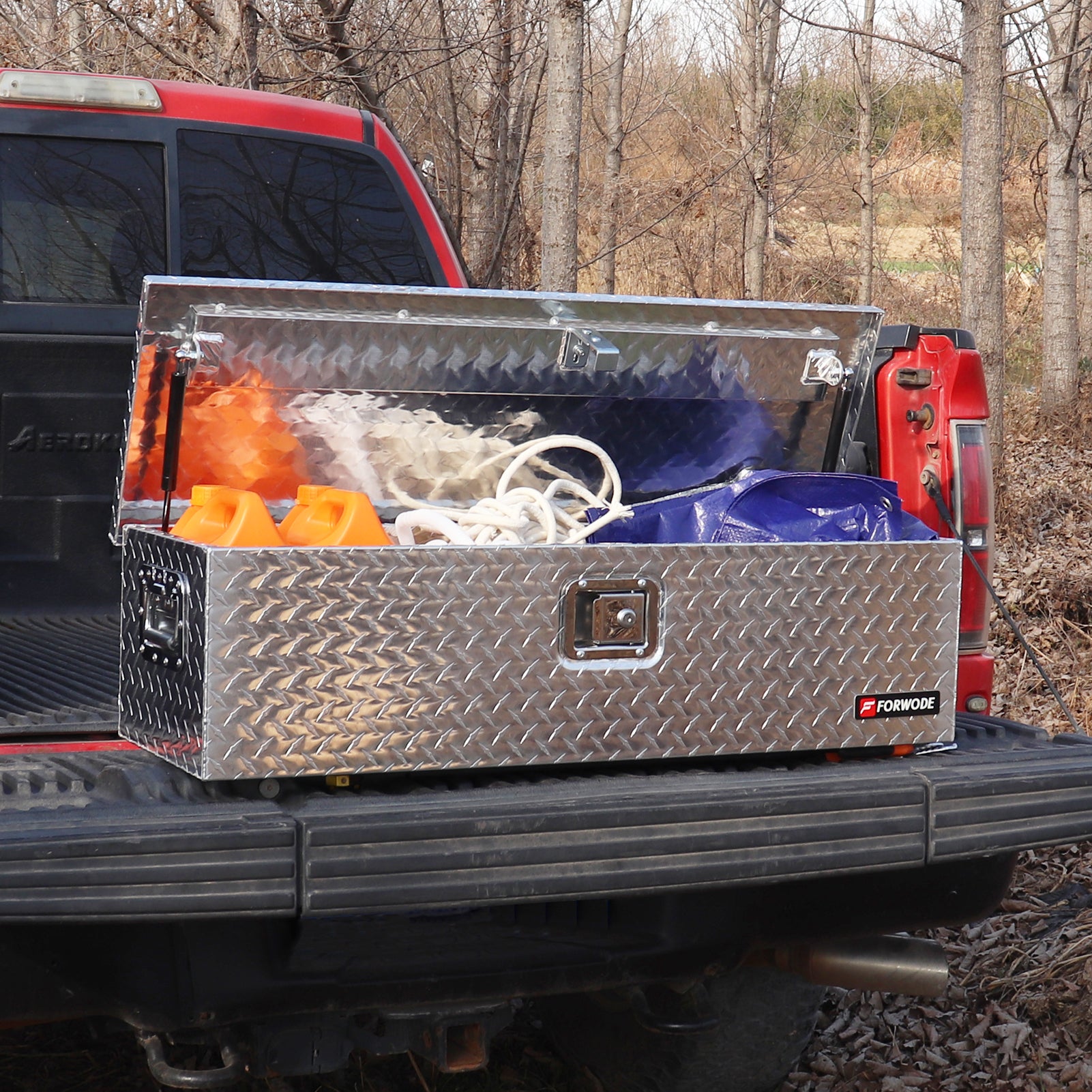 FORWODE aluminum tool box for truck bed boasts a simple yet vintage design, offering a lightweight and durable storage solution. When the doors are closed, it prevents moisture or water from entering, protecting your tools from harsh weather conditions. The top-opening lid provides easy access to your toolbox's contents and allows for convenient organization. The gas strut design ensures a stable lid-opening process. Equipped with side handles, this trailer tongue box offers a secure grip even when wearing gloves, making it easy to transport.