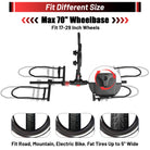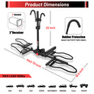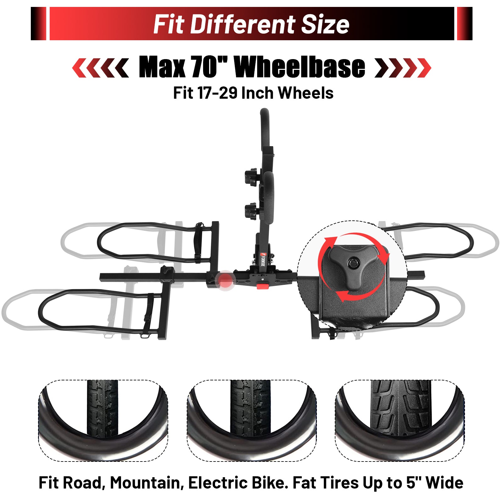 FORWODE Function hitch mount bike rack is constructed with corrosion-resistant, all-steel construction, making it durable and powerful enough to carry 2 bikes weighing 90 lbs each. (180 lbs total). The bike rack fit 17-29 inch wheels, max 70inch wheelbase, and up to 5-inch tires